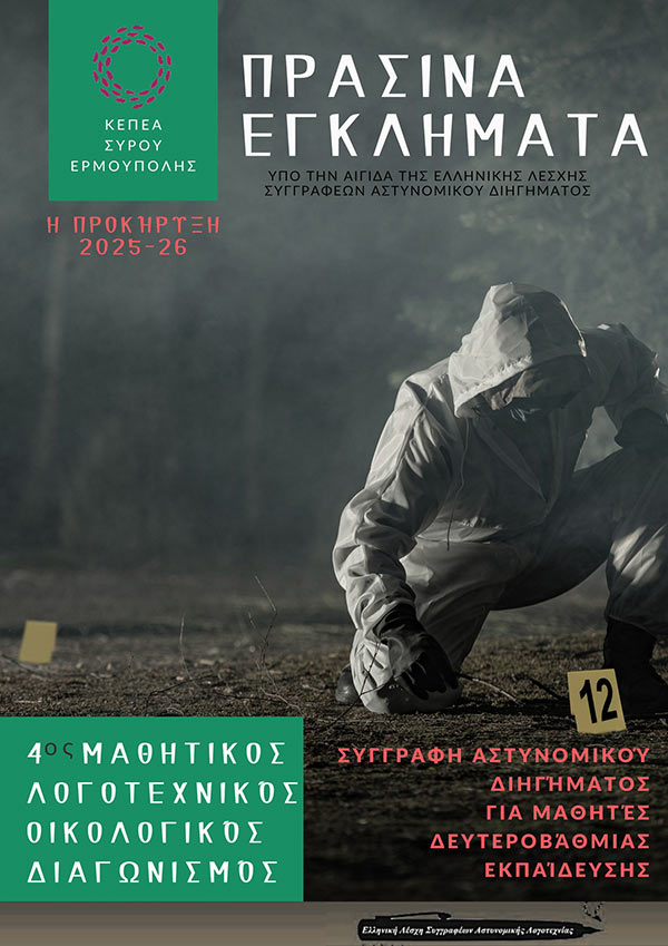 Τίτλος4ος Μαθητικός Λογοτεχνικός Οικολογικός Διαγωνισμός «πράσινα εγκλήματα» – συγγραφή αστυνομικού διηγήματος
