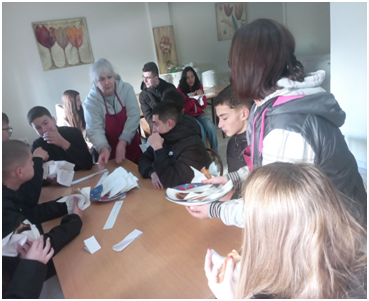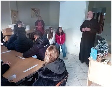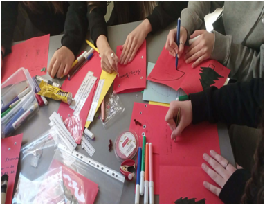 Στη συνέχεια, δημιούργησαν χριστουγεννιάτικες κάρτες, οι οποίες αξιοποιήθηκαν από το 15μελές Μαθητικό Συμβούλιο στη δράση κοινωνικής προσφοράς στο Συσσίτιο της Μητρόπολης. Το Συσσίτιο αποτελεί έναν σημαντικό θεσμό κοινωνικής στήριξης, καθώς ετοιμάζει καθημερινά περίπου 300 μερίδες φαγητού για ανθρώπους που βρίσκονται σε ανάγκη: άπορους, μοναχικά άτομα, αλλά και οικογένειες με παιδιά.