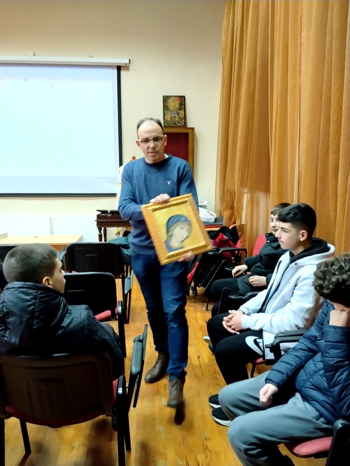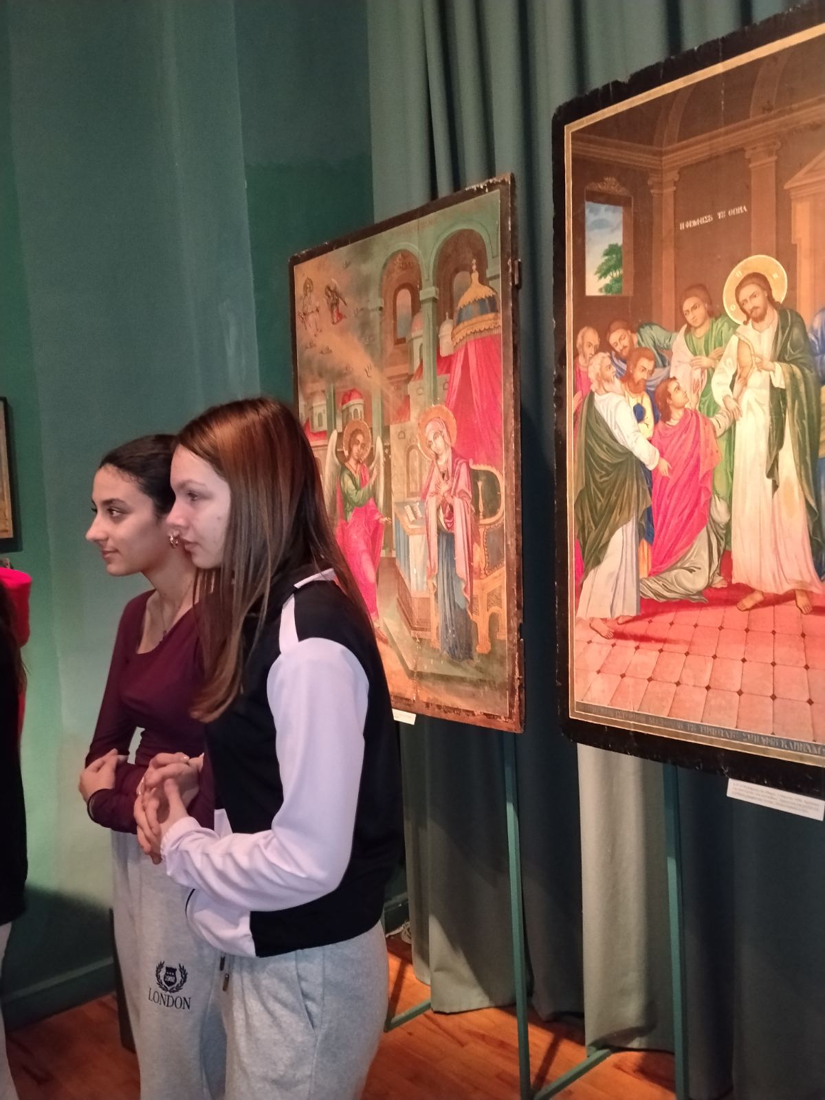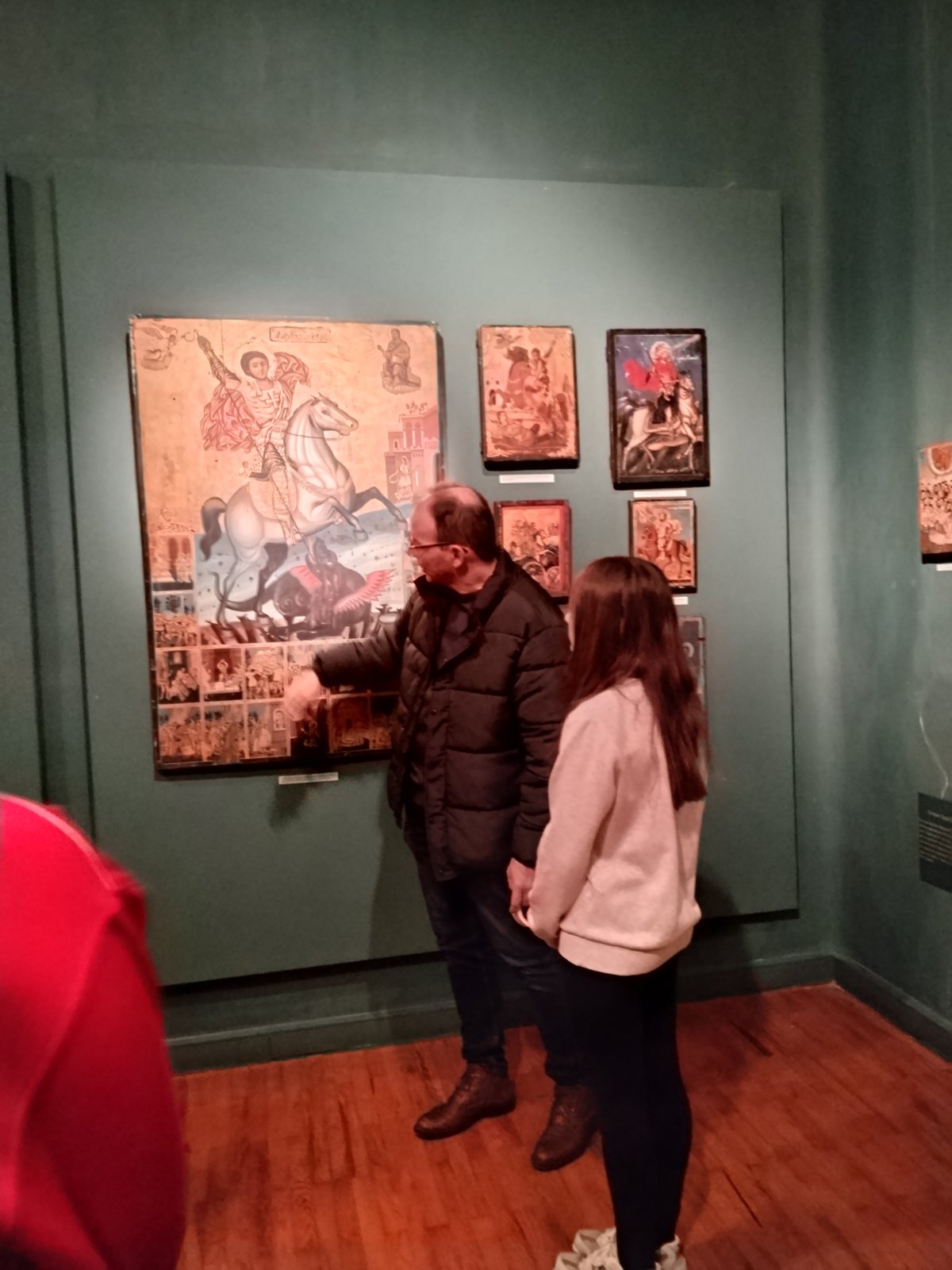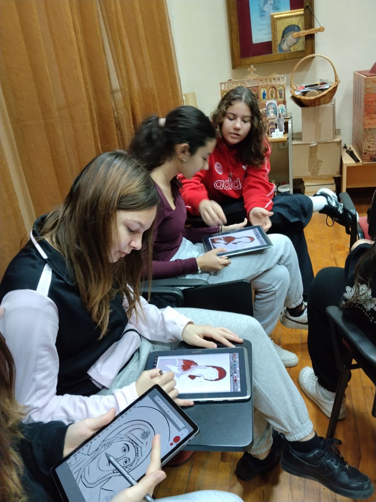 Στο πλαίσιο των μαθημάτων της Βυζαντινής Ιστορίας και των Εικαστικών, το τμήμα Β1 του σχολείου μας επισκέφτηκε το Εκκλησιαστικό Μουσείο Αλεξ/πολης στις 11/2/2026, όπου οι μαθητές συμμετείχαν σε εκπαιδευτικό πρόγραμμα με τίτλο «Από το Ανθίβολο στην Εικόνα», σε μία προσπάθεια να βγουν τα παιδιά από τις σχολικές αίθουσες και να ευαισθητοποιηθούν σε θέματα της πολιτιστικής μας κληρονομιάς. Στόχος του προγράμματος ήταν να μυηθούν οι μαθητές στα μυστικά της μεταβυζαντινής αγιογραφίας, να γνωρίσουν την οργάνωση των εργαστηρίων ζωγραφικής κατά τον 15ο και 16ο αιώνα, τα υλικά και τις τεχνικές, καθώς και το σύνολο των εργασιών για την παραγωγή μιας εικόνας. Στο τέλος, μέσα από μια ειδικά σχεδιασμένη εφαρμογή Αγιογραφίας σε tablet, οι μαθητές μπόρεσαν σε εικονικό περιβάλλον να εξασκηθούν στην Ορθόδοξη ζωγραφική σε όλα τα επίπεδα, από τον σχεδιασμό μιας εικόνας έως και την ολοκλήρωσή της.