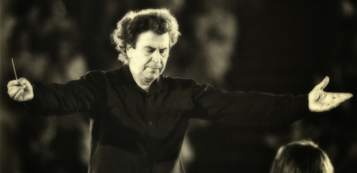 Μαθητές και μαθήτριες της χορωδίας του σχολείου παρακολουθούν μουσικοχορευτική παράσταση αφιερωμένη στον μεγάλο συνθέτη Μίκη Θεοδωράκη.