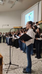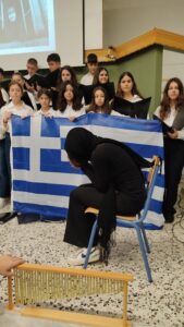 85 χρονιά μετά το έπος του 1940, αφού αποδόθηκε η δέουσα τιμή στην ελληνική σημαία, η αφήγηση παρουσίασε την άνοδο του φασισμού στην Ευρώπη και στην Ελλάδα, την ιταλική επίθεση στην Ελλάδα, αλλά και την αντίσταση των Ελλήνων και των Ελληνίδων, που με υψηλό φρόνημα και σθεναρότητα, όρθωσαν το ανάστημά τους στα χιονισμένα βουνά της Πίνδου κι έγραψαν με την αυτοθυσία τους χρυσές σελίδες δόξας. Το χρονικό της γιορτής παρουσίασε και τα σκληρά χρόνια της Κατοχής, που όμως δεν κατάφεραν να κάμψουν το ηθικό και να κλονίσουν την αδάμαστή θέλησή τους για ελευθερία. Τα κείμενα του Brecht και του Γ. Ρίτσου πλαισίωσαν εμφαντικά την παρουσίαση των ιστορικών γεγονότων, ενώ στην εναργέστερη αποτύπωσή τους συνέβαλε καταλυτικά η χορωδία “Allegro” του σχολείου μας η οποία ερμήνευσε με μοναδικό τρόπο τραγούδια που τα περισσότερα απ΄ αυτά δεν έχουμε συνηθίσει να ακούμε σε σχολικές γιορτές.