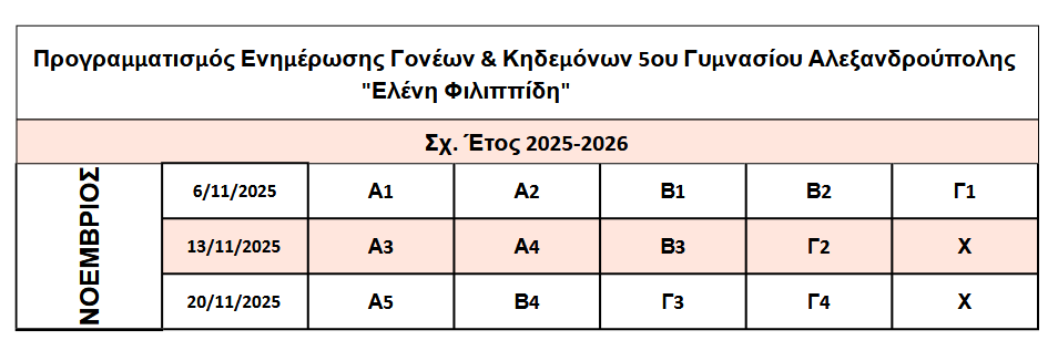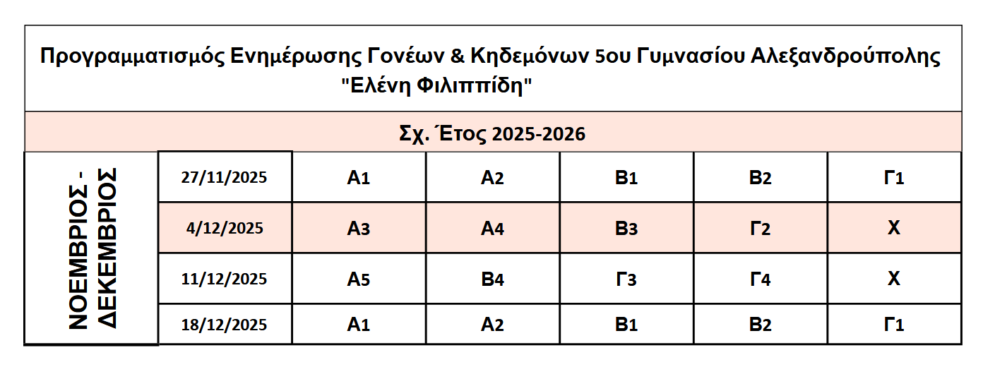 Η ενημέρωση Γονέων & Κηδεμόνων πραγματοποιείται κάθε Πέμπτη.
