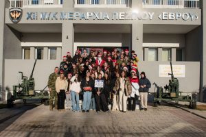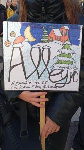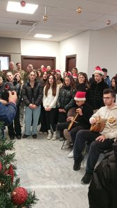 Την Τρίτη 23 Δεκεμβρίου, τελευταία μέρα πριν τις διακοπές των Χριστουγέννων, η χορωδία Allegro του σχολείου μας επισκέφθηκε το Διοικητήριο της ΧΙΙ Μ/Κ Μεραρχίας Πεζικού. Εκεί έψαλε κάλαντα από όλη την Ελλάδα και μετέφερε τις ευχές του σχολείου μας στο προσωπικό και στα στελέχη της Μεραρχίας που μας περίμεναν. Η Διοίκηση της Μεραρχίας ανταπέδωσε τις ευχές και πρόσφερε γλυκά εδέσματα στα μέλη της.