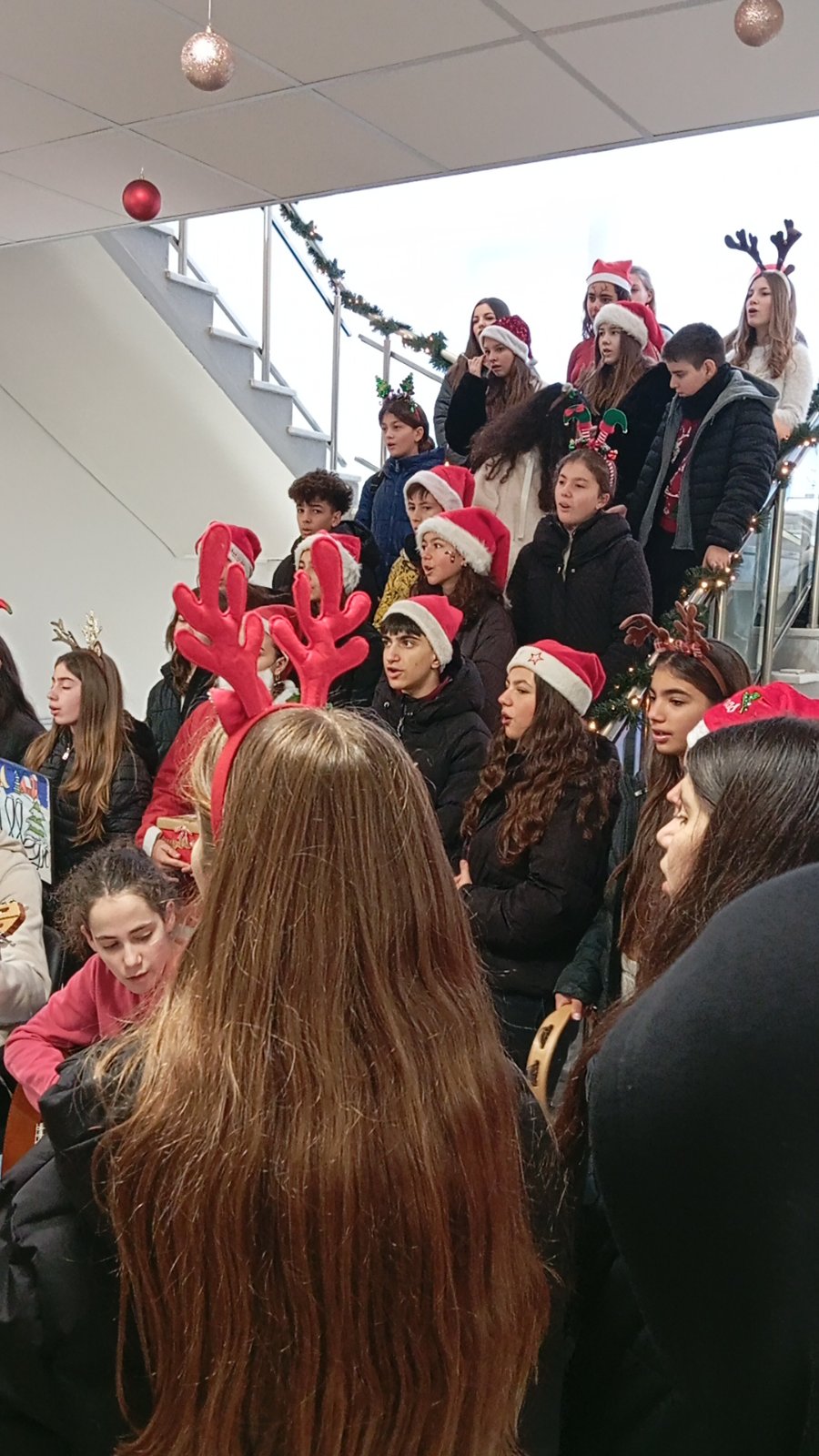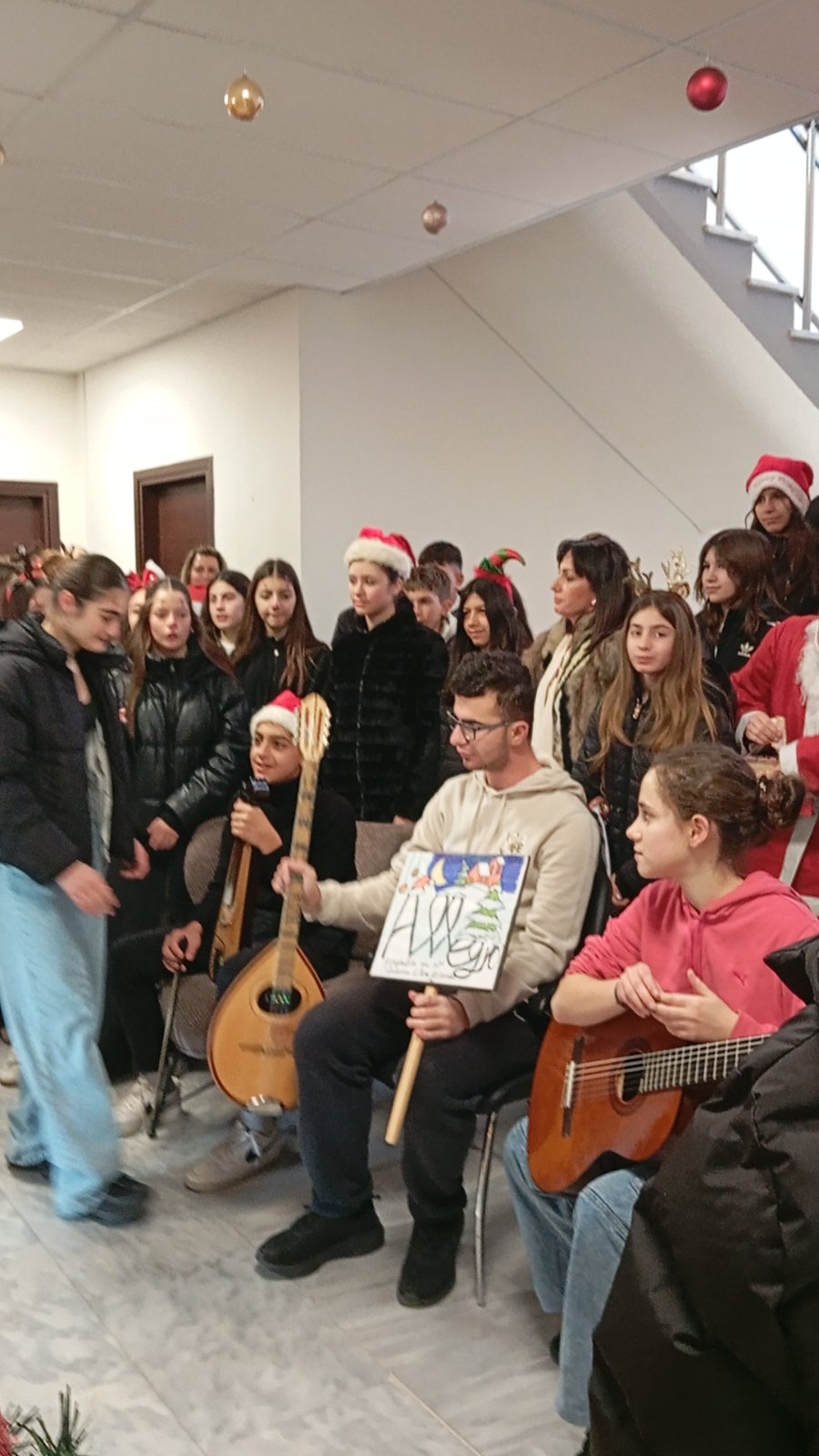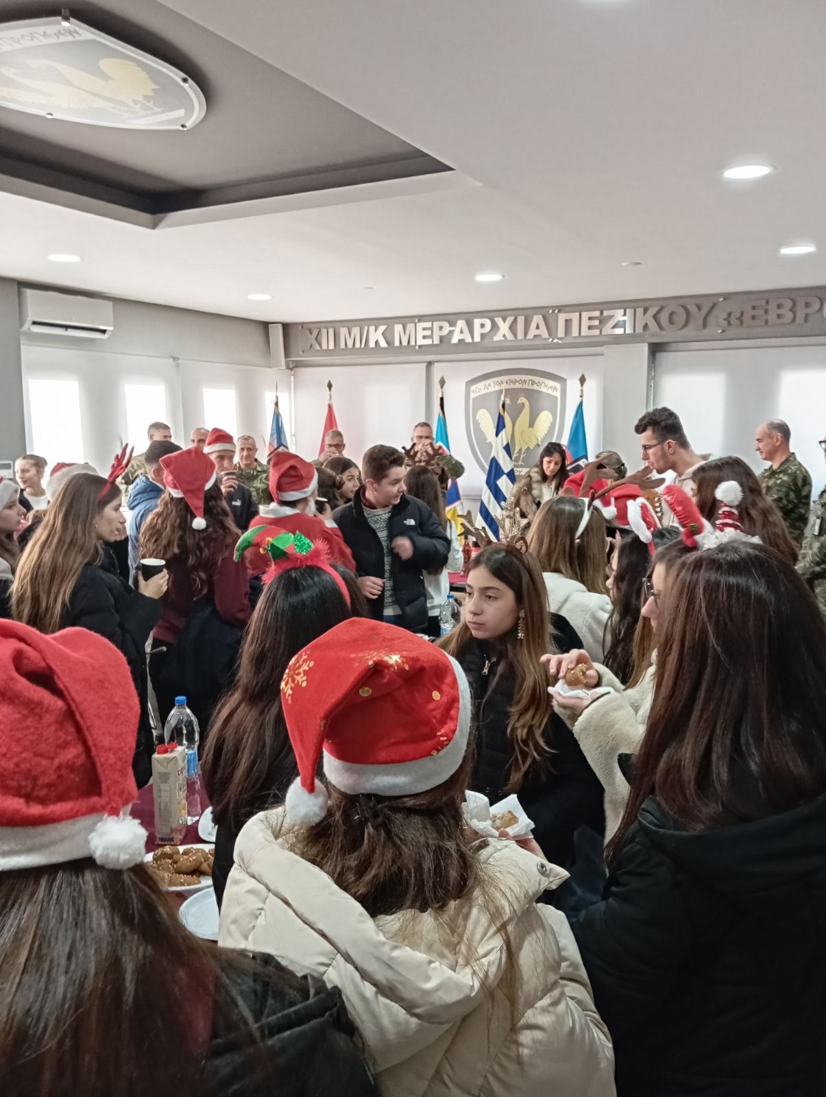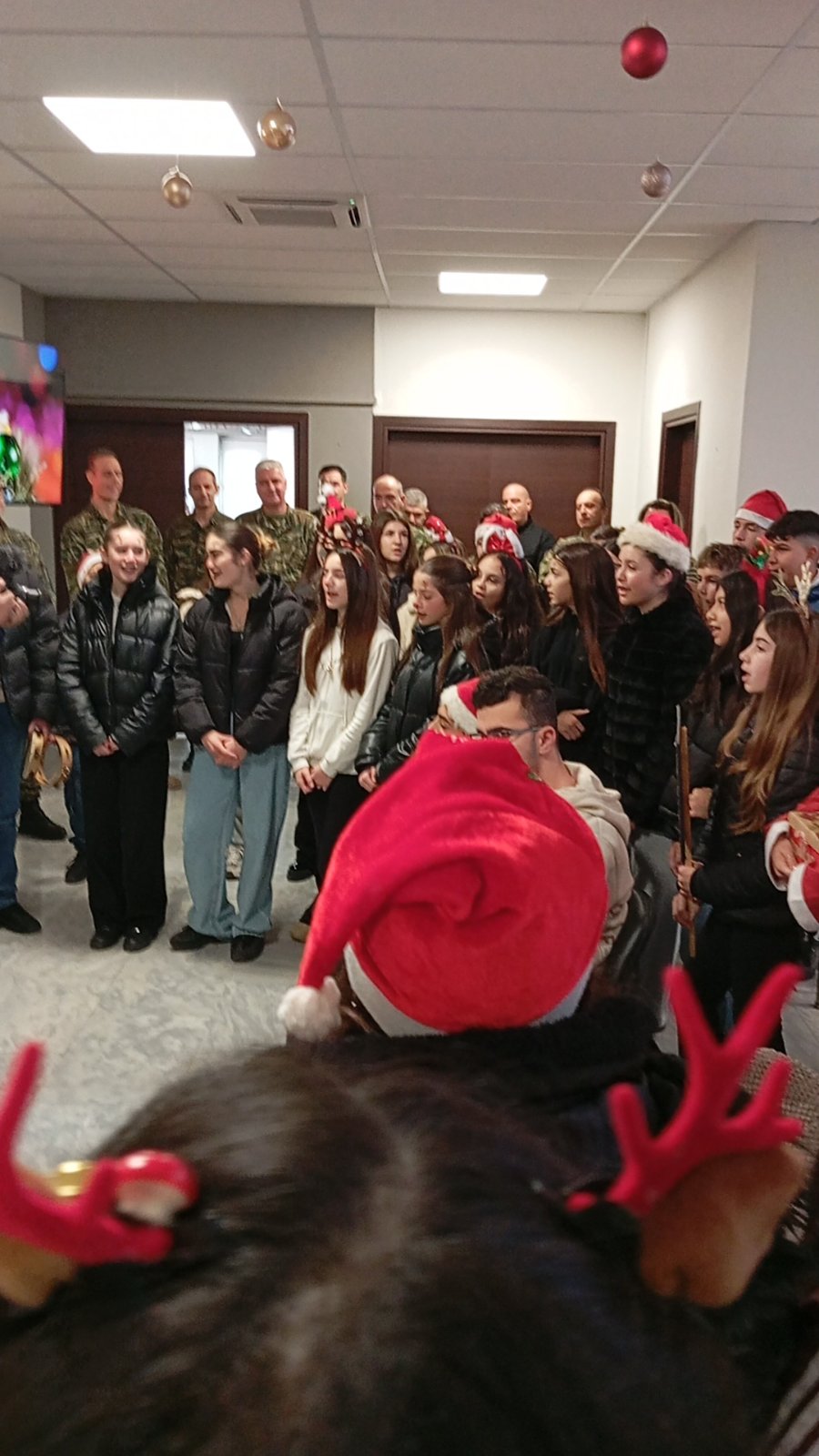 Την Τρίτη 23 Δεκεμβρίου, τελευταία μέρα πριν τις διακοπές των Χριστουγέννων, η χορωδία Allegro του σχολείου μας επισκέφθηκε το Διοικητήριο της ΧΙΙ Μ/Κ Μεραρχίας Πεζικού. Εκεί έψαλε κάλαντα από όλη την Ελλάδα και μετέφερε τις ευχές του σχολείου μας στο προσωπικό και στα στελέχη της Μεραρχίας που μας περίμεναν. Η Διοίκηση της Μεραρχίας ανταπέδωσε τις ευχές και πρόσφερε γλυκά εδέσματα στα μέλη της.