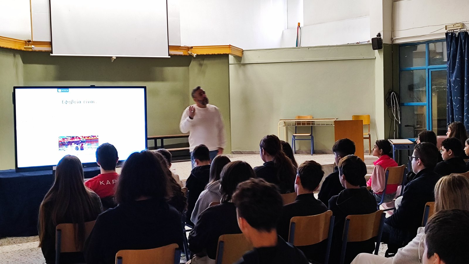 Οι επαγγελματίες υγείας μίλησαν στους μαθητές και στις μαθήτριες για τις αλλαγές που συντελούνται στο σώμα τους την περίοδο της εφηβείας, την πρόληψη και την αντιμετώπιση σεξουαλικά μεταδιδόμενων νοσημάτων και την πιθανότητα ανεπιθύμητης εγκυμοσύνης. Στη συνέχεια οι μαθητές και μαθήτριες έθεσαν επώνυμα και ανώνυμα όποιες απορίες είχαν.