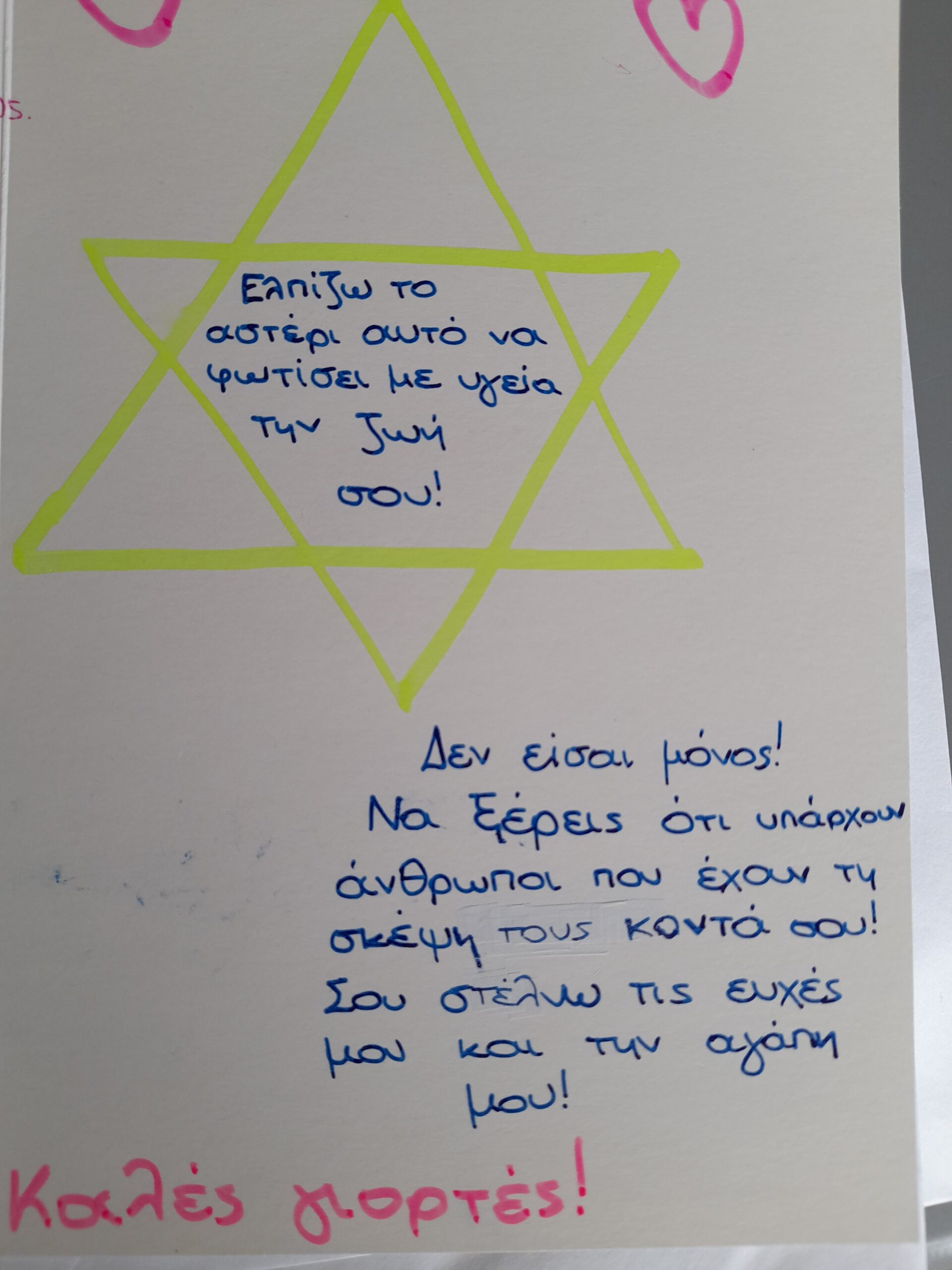 Κάποιοι όμως ( και δεν είναι λίγοι) έχοντας χρειαστεί να νοσηλευτούν, είτε οι ίδιοι προσωπικά είτε κάποια αγαπημένα τους πρόσωπα, σε νοσοκομείο και μάλιστα κατά τη διάρκεια των γιορτών, καταλαβαίνουν πολύ καλά πόσο σημαντικό είναι να λάβει ένας ασθενής μια ενίσχυση, ένα μήνυμα που να λέει «δεν είσαι μόνος». Πόσο μάλλον αν πρόκειται για ογκολογικό ασθενή, μιας και πολλοί από εμάς και μόνο στο άκουσμα της λέξης καρκίνος, παγώνουν.