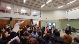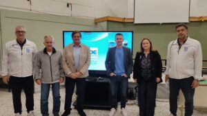 Μια έκπληξη περίμενε τους μαθητές και τις μαθήτριες της Α’ και Β’ τάξης σήμερα, Δευτέρα, 20/10/2025. Στην αίθουσα εκδηλώσεων του σχολείου είχαν την ευκαιρία να γνωρίσουν μέλη της προπονητικής ομάδας της Εθνικής Ελλάδας της Υδατοσφαίρισης, που βρέθηκαν στην Αλεξανδρούπολη ως κλιμάκιο της Κολυμβητικής Ομοσπονδίας Ελλάδος για να αξιολογήσουν νεαρούς αθλητές του πόλο στο παρακείμενο στο σχολείο μας Δημοτικό Κολυμβητήριο Αλεξανδρούπολης “Δημοσθένης Μιχαλετζάκης”. Εν μέσω των υποχρεώσεων τους οι κύριοι Μαρκόπουλος Φ., Σελετόπουλος Δ. & Λαμπάτος Β., καθώς και οι προπονητές υδατοσφαίρισης του ΝΟΑ κ. Τζουμάρης Θ. & κ. Πατσίδης Γ. διέθεσαν λίγο από τον χρόνο τους για να επισκεφτούν το 5ο Γυμνάσιο Αλεξανδρούπολης.