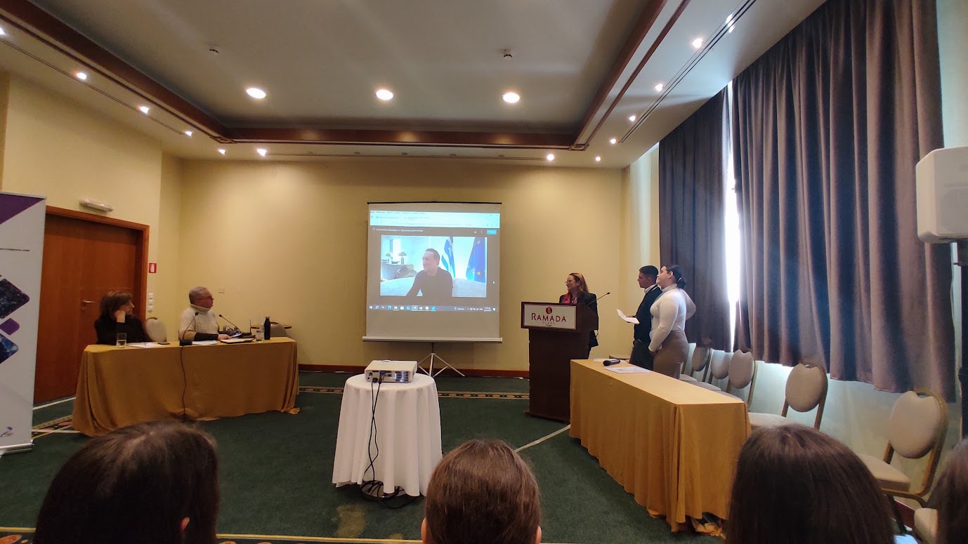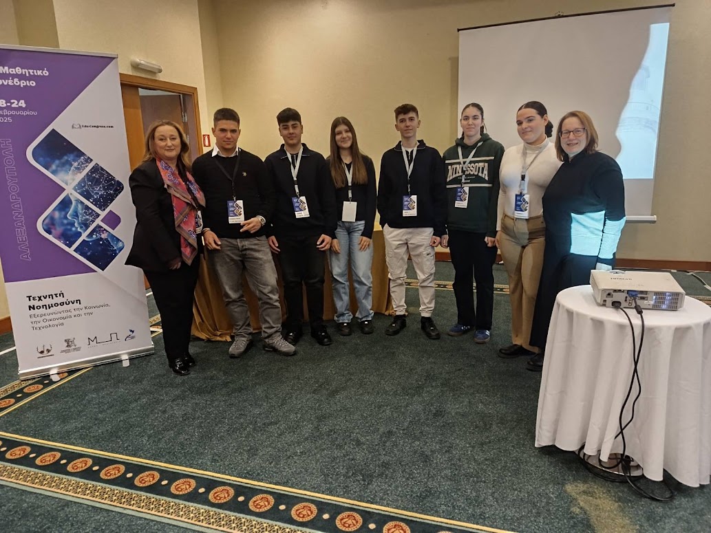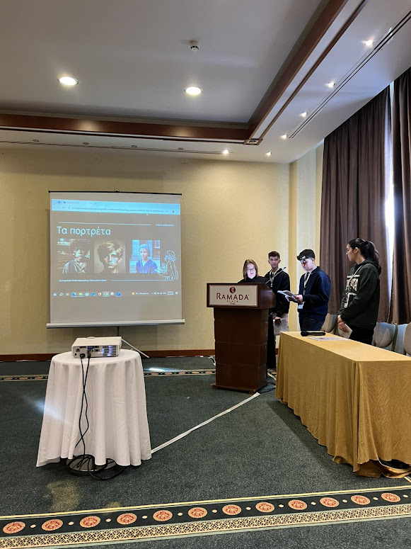 Για την εισήγηση με τίτλο “Φιλαναγνωσία και Τεχνητή Νοημοσύνη: ήρωες και ηρωίδες βιβλίου μιλούν για την προσφυγιά” εργάστηκαν οι μαθητές και μαθήτριες της περσινής μας Γ’ τάξης: Ειρ. Καραβούζη, Χρ. Κατσιάκης, Ν. Κεσσουδάκης, Γ. Μίχογλου, Π. Μουρουζίδου, Αλ. Μούτλια υπό την επίβλεψη της κ. Ζ. Μασάλη. Η εισήγηση αφορούσε εργασία που εκπόνησαν το σχολικό έτος 2023-2024 στο πλαίσιο αφενός δράσης φιλαναγνωσίας με το βραβευμένο βιβλίο της Αγγ. Δαρλάση “Το αγόρι στο θεωρείο” κι αφετέρου διαδικασίας αδελφοποίησης με το Γυμνάσιο Κιτίου Λάρνακας Κύπρου. Δίνοντας κίνηση και λόγο σε πορτρέτα ηρώων του βιβλίου εστίασαν στις καταστροφικές συνέπειες που έχει ο πόλεμος για τα παιδιά, στην απώλεια, στον ξεριζωμό και στην ξενιτιά. Η παρουσίαση της εργασίας απέσπασε ειδικό τιμητικό έπαινο!
